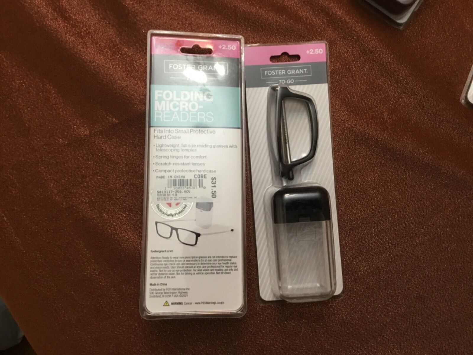 2 Foster Grant TO GO Folding Micro-Readers w Protective Case FGTRTG04 BLK +2.50