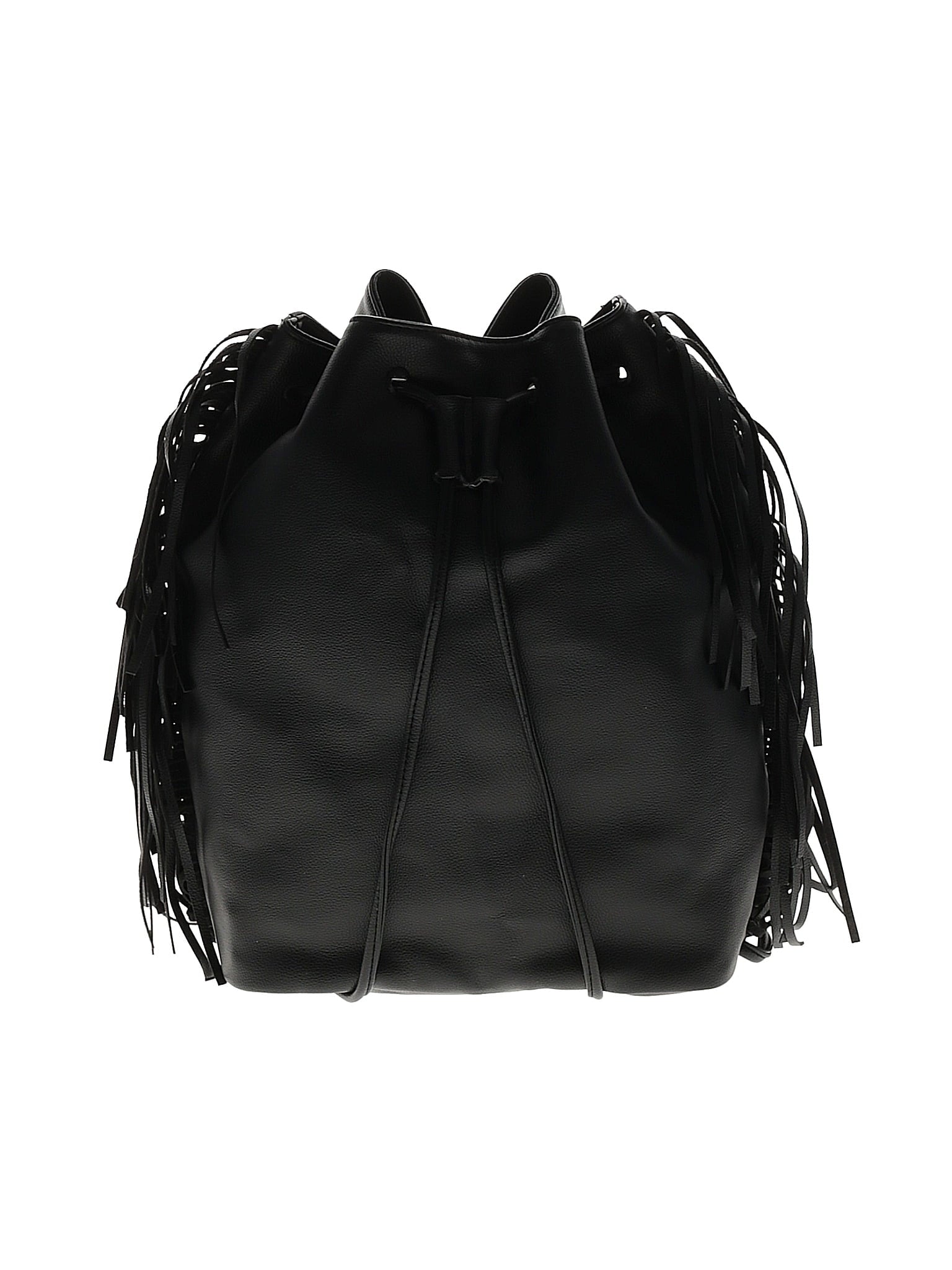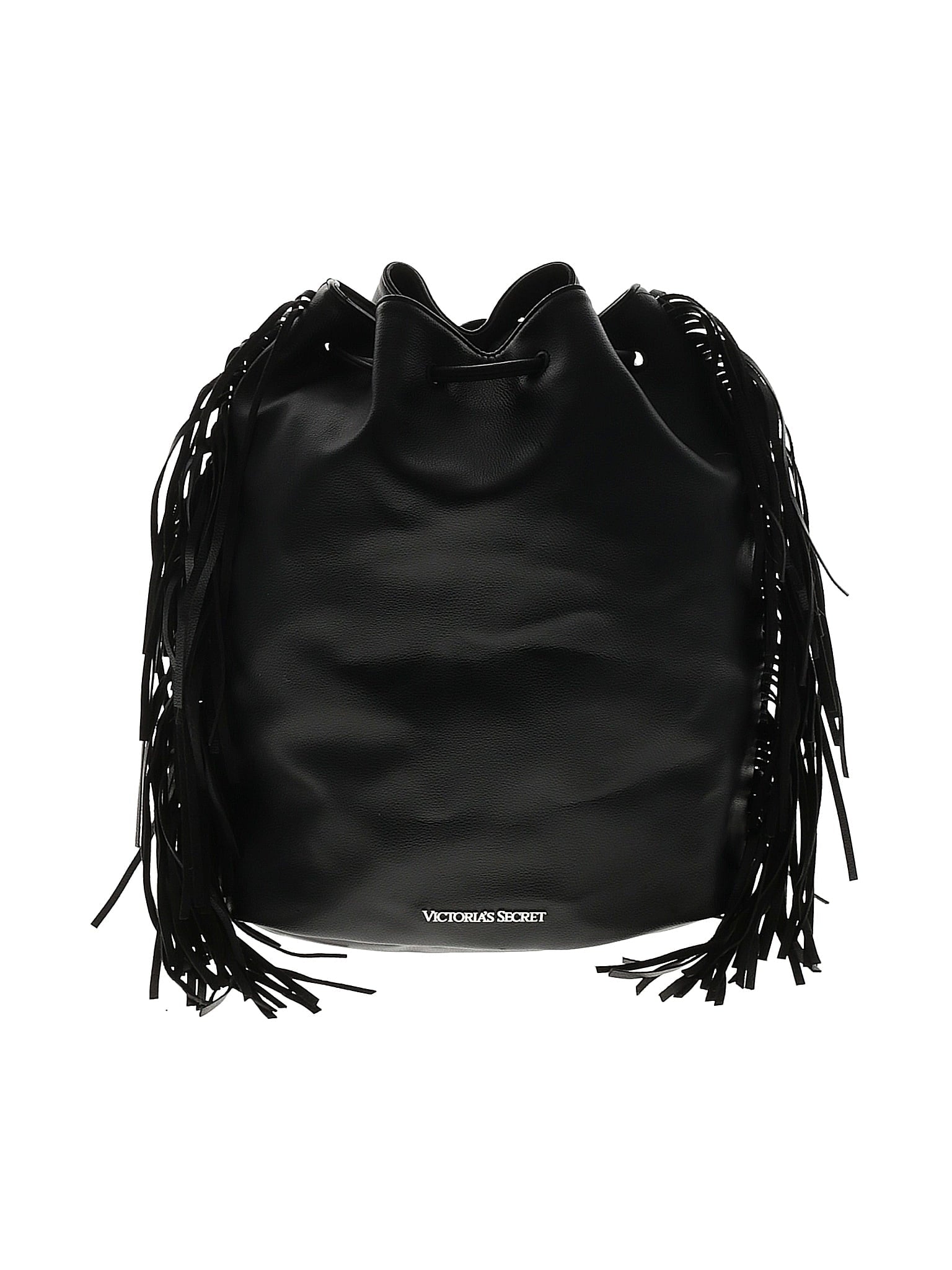 VICTORIA'S SECRET Black Fringed Drawstring Backpack $85 NWT